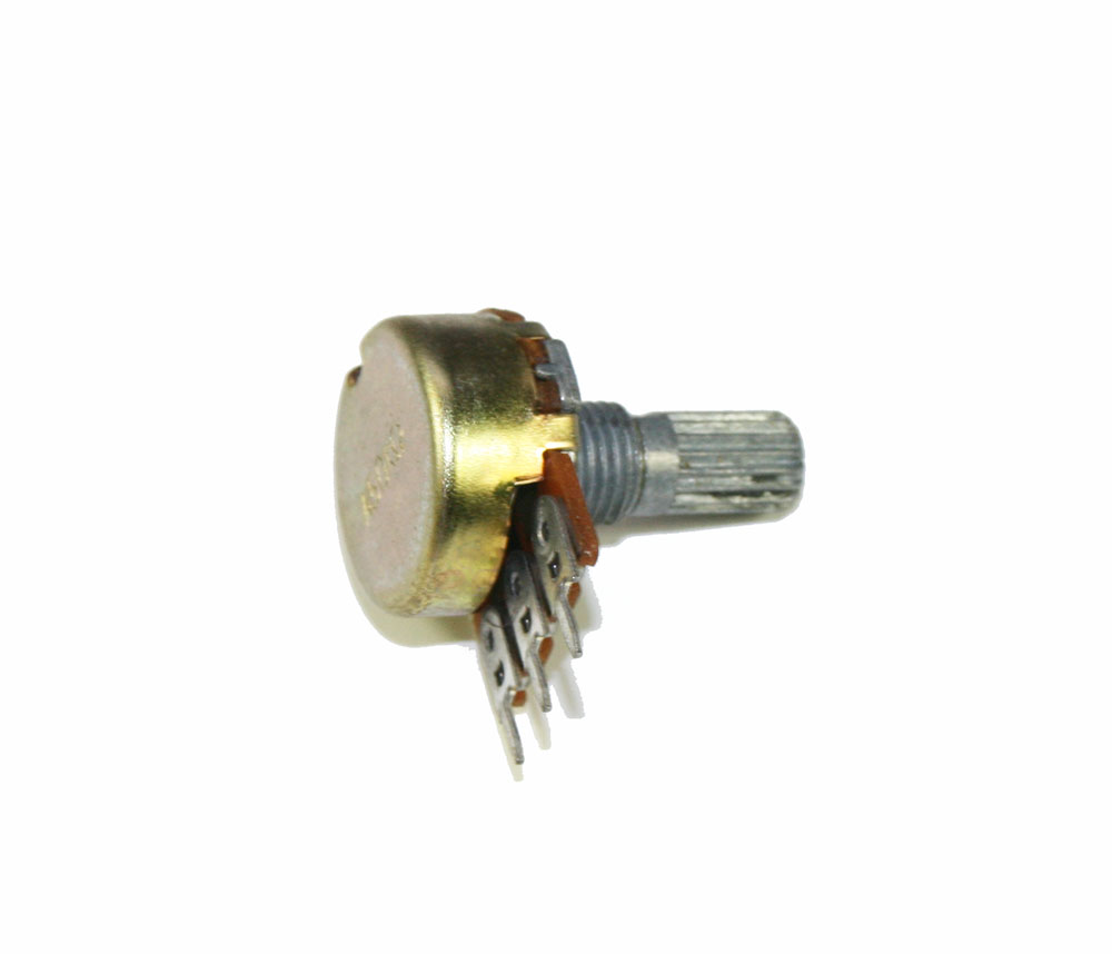 Rotary potentiometer, 50KA, horizontal mount, 15mm knurled shaft.