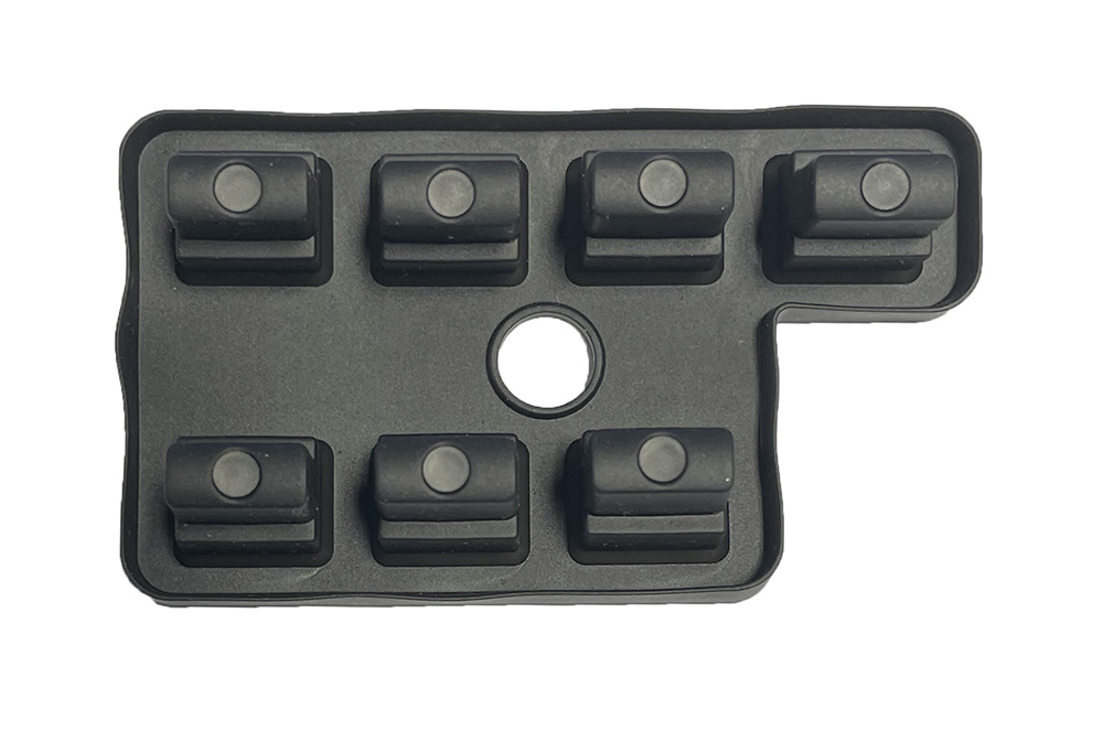Button set, 7 buttons, for Yamaha keyboard. This button set has carbon contacts on the underside, and as the carbon wears, it loses its conductivity, causing the buttons to become unresponsive. Replacing the button set should fix this issue. This replacement button set is Yamaha part number ZP353800.