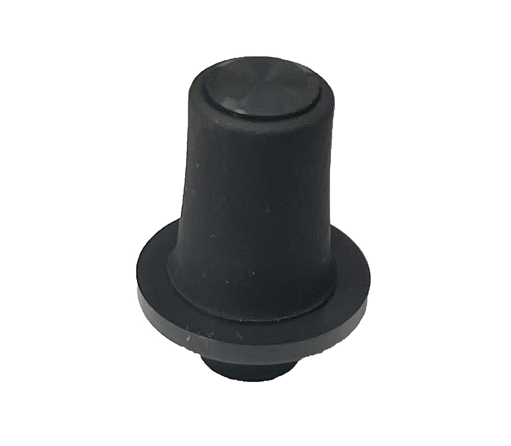 Black plastic rotary knob with soft touch sleeve, for Casio keyboard. This replacement knob is Casio part number 10521763.