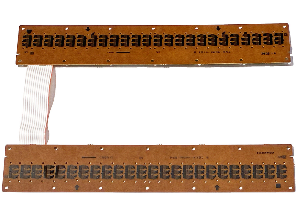 Key contact board assembly (PWB-MGMK-KYB1 and PWB-MGMK-KYB2) (N40A35B5) (A30C5/C7A3/C7), for Casio keyboard. This contains two 24-note key contact boards connected by a 13-wire ribbon connector.