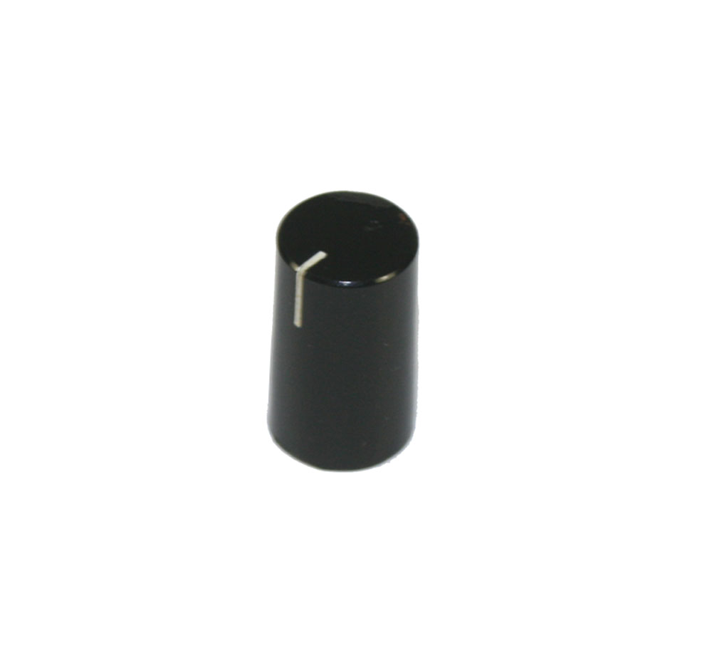 Black rotary knob, for Kurzweil rack unit. This knob fits onto a knurled shaft and is 10mm in diameter.