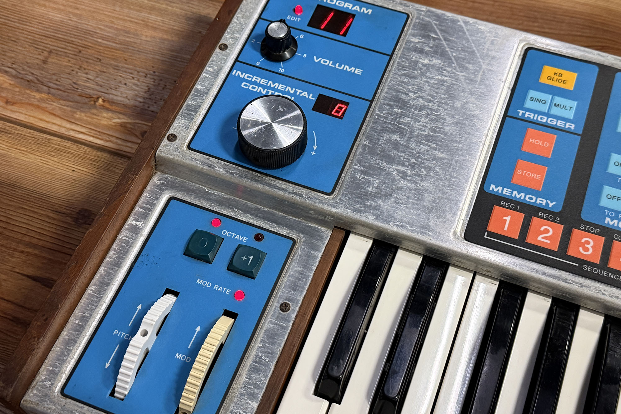 (Item #U997)This awesome moog source has been gone through by one of our great technicians. It has a new membrane panel replacement installed as well as a new Pitch Wheel. Also, the Data Encoder has been restored for full functionality! All else was checked and has been verified as ready to use and make some great music with! Please note, while this Source is fully functional, it does have cosmetic wear from use over the many years. These Source synths are quite known for making some wicked basses and leads but it also goes deeper for some sweet synth textures!