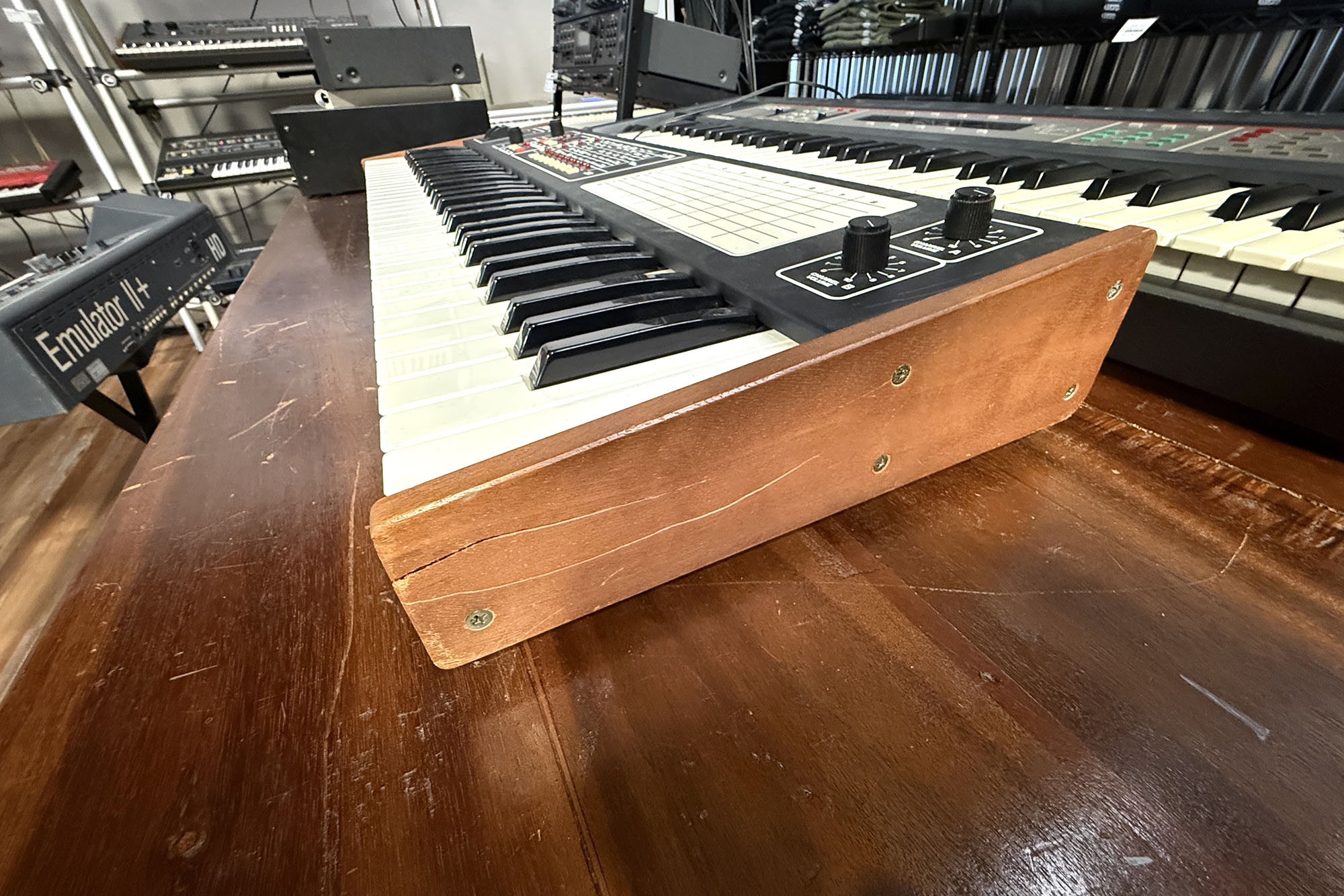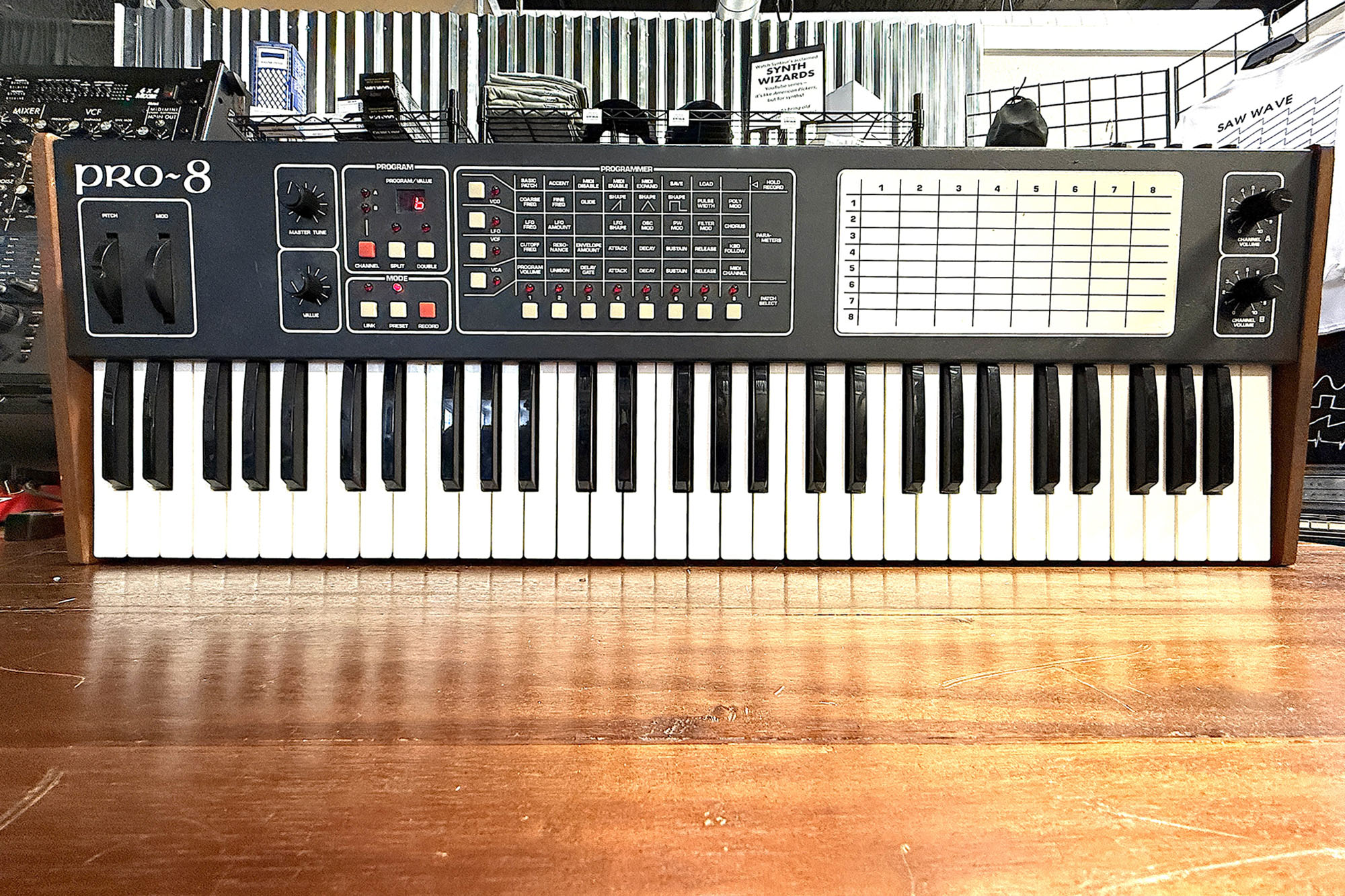 (Item #U914)The Sequential Pro-8 is a synth based around the CEM3394 IC, which is essentially an entire synthesizer voice on a single chip. It has the unique ability to be used either as an eight-voice single VCO synth, or to be configured as two four-voice synths with dual VCOs - and those two synths can be layered together or split across the keyboard. While similar to the six-track and split-eight, this rare synth has a unique history detailed in our first SYNFO newsletter. This synth is in great condition and has been checked by our technicians to ensure full functionality.