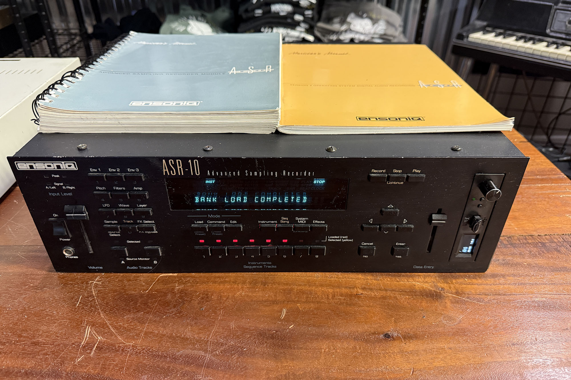 (Item #U998)This awesome Ensoniq ASR-10 Rack has been gone over by one of our amazing technicians. Everything works as it should with no functional, operational nor sonic issues. It has 10 megs of RAM and has a sweet upgrade via the Gotek USB drive.. no more floppies! The USB thumb drive, included, has many original ensoniq banks loaded for your instant retro Ensoniq gratification! Also included are a set of original manuals. This is a great addition to any stage or studio.